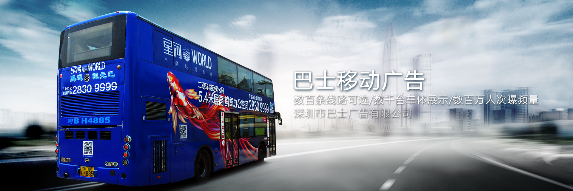 深圳公交是指服务于深圳市区以及周边郊区(以前称关外)之间的公共交通运输系统,含有公交车和地铁巴士两种服务形式,为了更好服务广大乘客,公交车配置有巴士车,巴士站台,车内椅,拉手,地铁巴士配置有地铁车,地铁站台,地铁站厅,地铁椅,地铁拉手,由于深圳人流量大,人群广,是极佳的受众群,深圳优质企业众多,深圳公交系统成了这些企业青睐媒体资源,深圳市巴士广告有限公司应运而生,承接这些公交媒体资源,整合成:巴士车身广告,巴士车内广告,巴士站台广告,巴士车尾屏广告,地铁巴士车内广告,地铁巴士站台广告,地铁巴士语音广告,地